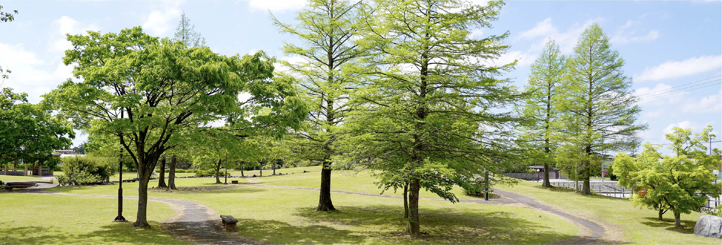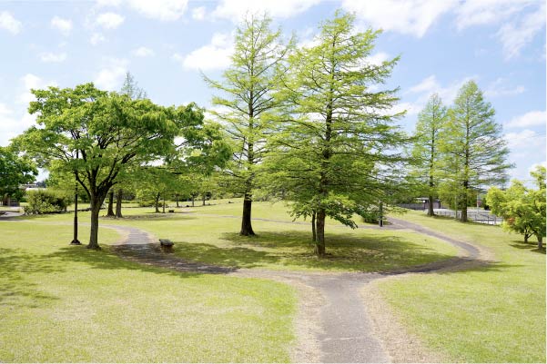 - 施設の概要敷地面積32,500m²、芝生自由広場7,700m²、芝張り面積17,385m²、ジョギング・ウォーキングコース、複合遊具、公衆トイレ、あずまや、多目的広場に隣接、駐車場211台