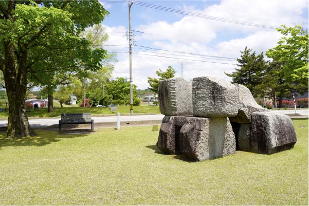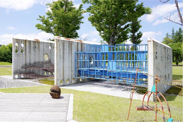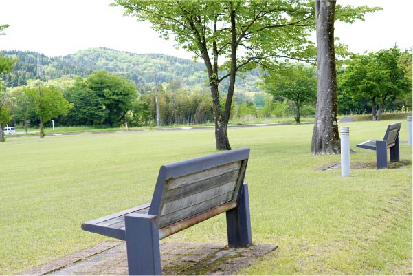 ウエルネスリゾート施設ウインディに隣接した芝生広場があります。周辺には馬渕洋の石彫「ZŌ」、大型遊具、木陰にたたずむベンチがあります。